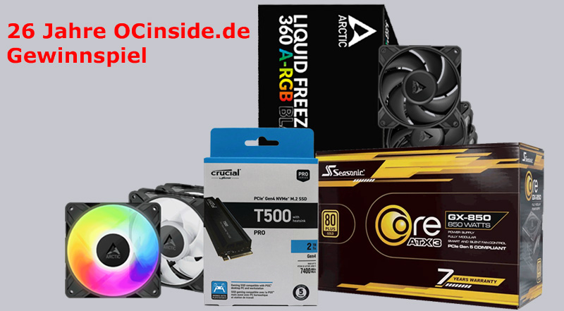 Hier geht es zum 26 Jahre OCinside Gewinnspiel, wo man bis einschließlich 26.12.2025 teilnehmen kann und danach wird der glückliche Gewinner unter allen Teilnehmern gezogen. Zum Erhöhen der Gewinnchance können alle zusätzlich nochmal auf der OCinside.de Facebook, YouTube und X Seite teilnehmen. Also nichts wie los und viel Glück