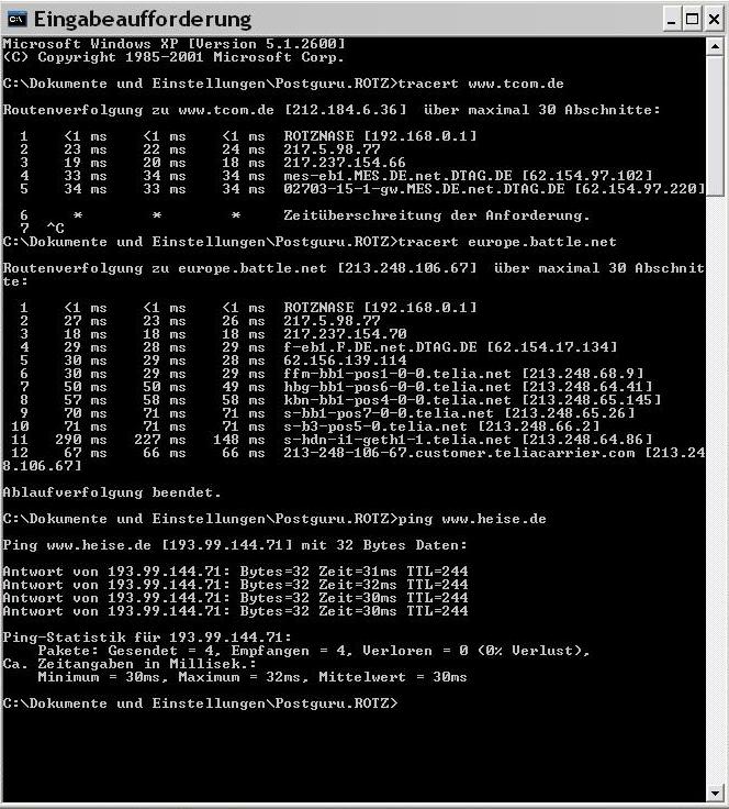 Ich kenne also nix anderes als nen Ping von unter 20 zu Heise.(Derzeit 16ms über Softrouter )