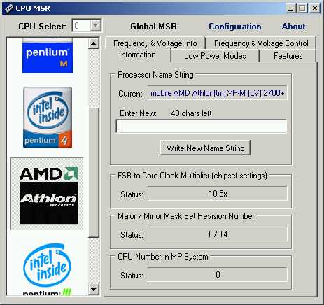 Jetz hab ich's! Der gelockte Duron läuft mit ganz untypischem Multi von 11! Kuckt mal auf die Seite Duron Unlock, da steht alles. Man macht aus dem Duron einen Mobile Duron oder Athlon, und *schwupp* kann man sogar unter Windows mal eben schnell den Multi verändern! Dass wir uns nicht falsch verstehen, es geht auch mit den LOCKED Durons, die sonst keinen anderen Multi haben wollen!!! Einfach die 2. Brücke der L5 Bridges mit SLL vollstopfen und fertig ist das ganze. Dann braucht man noch CPUMSR, um den Takt zu ändern. Bei mir hab ich sogar noch den MP-Mod gemacht, mein Duron hat nun einen äußerst interessanten Namen bekommen: