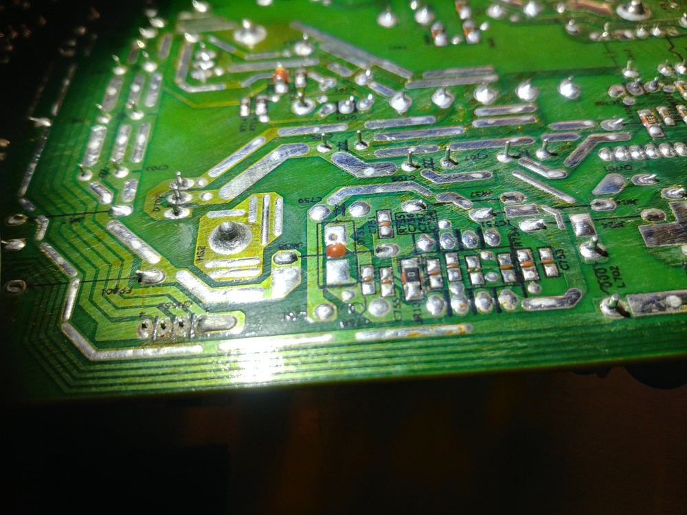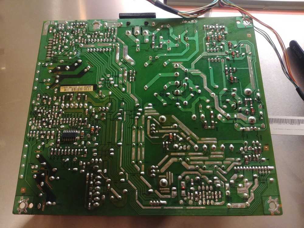 Hallo, der Post ist zwar schon etwas her aber vielleicht hilft es ja noch dem Einen oder Anderen. Sofern kein Schaltplan für die Platine vorhanden ist, würde ich einfach nach Schema F vorgehen. 1. Als erste Anlaufstelle ist immer die Sicherung gut. Hier ist eine Schmelzsicherung eingebaut bei der man leider von Außen nur schwer erkennen ob sie noch in Ordnung ist. Mit dem Messgerät auf Durchgang prüfen und ggf. tauschen. Eventuell auch das Stromkabel prüfen/tauschen. 2. Danach testet man die Kondensatoren. Sollte einer von diesen einen Kurzschluss aufweisen lässt sich das durch einen niederohmigen Durchgang an den jeweiligen (+/-) Polen leicht feststellen. 3. Häufig sind es die Transistoren die nach einiger Zeit aufgeben. Dies kann leicht mit einem Transistor Tester gemessen werden. Dafür müssen diese jedoch ausgelötet werden, was aber bei dieser Platine keine Probleme bereiten sollte. Den Tester gibt es für ein paar €uro beim freundlichen China-Händler. Kann man auch bei Punkt 5 verwenden. 4. Unsaubere Lötstellen oder Korrosion kann Lötverbindungen mit der Zeit brüchig werden lassen. Ein Reflow kann da manchmal Wunder wirken. Flussmittel und bleihaltiges Lötzinn nicht vergessen. 5. Sonstige Bauteile kann man anschließend prüfen. Transformatoren, Dioden, Widerstände, Anschlüsse, Spulen uvm. Messen, begutachten und ggf. tauschen. 6. Das große Ganze betrachten. Manchmal steckt der Fehler gar nicht in dem Bauteil bzw. der Platine die man von Anfang an in Verdacht hatte. Ein Kurzschluss in der Panelbeleuchtung oder der Bedieneinheit hätte genau den gleichen Effekt. Manchmal hilft es Bauteile separat ausserhalb des Gerätes zu testen. Aber Vorsicht! Wenn man nicht vertraut ist mit der Arbeit an spannungsführenden Teilen, lieber einen Fachmann zu Rate ziehen. Viele Grüße, Mike