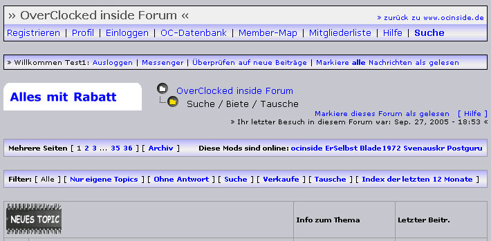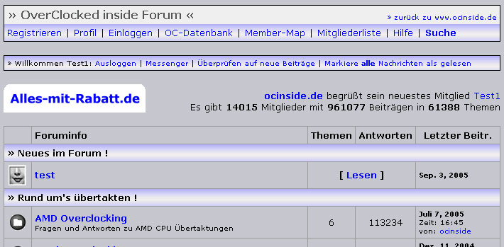 | Um 11:32h? Ich finde das ganz gut, auch das hellere gefällt mir. Allerdings nicht so gut für empfindliche Augen so früh am morgen... Ich stimme jetzt mal für so belassen EDIT: Die nächste Erweiterung wäre wohl, dass sich jeder selbst seine Farbe(n) aussuchen kann (Geändert von smoke81 um 11:46 am Sep. 28, 2005)