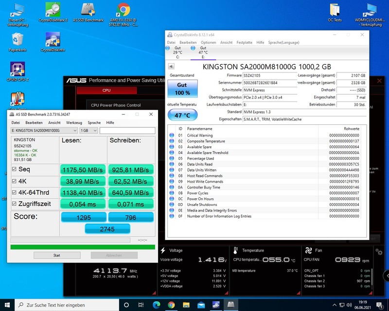 AMD FX 4000 MHz @ 5117 MHz 52°C mit 1.560 Volt