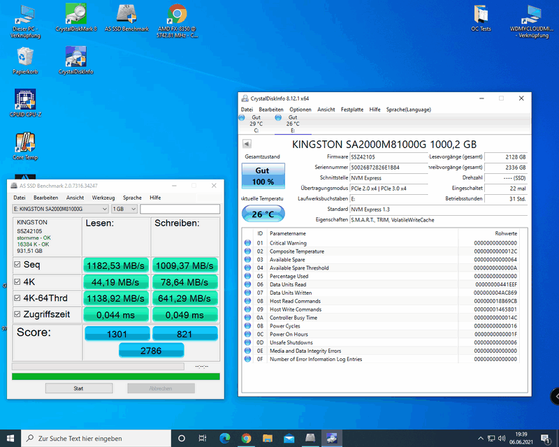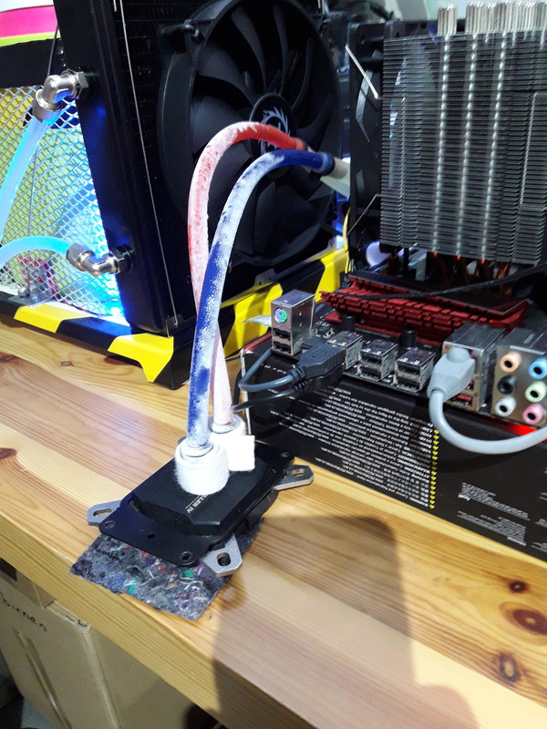 man sieht gut das Eis am Kühlerboden... kein Plan wo die Temp gemessen werden, aber die 26° stimmen nicht, ausser es wird am Board unter der NVME gemessen, da ich dazwischen Isolierung hatte... aber auch mit -10° gekühlt läuft die Super  danach noch etwas Eis