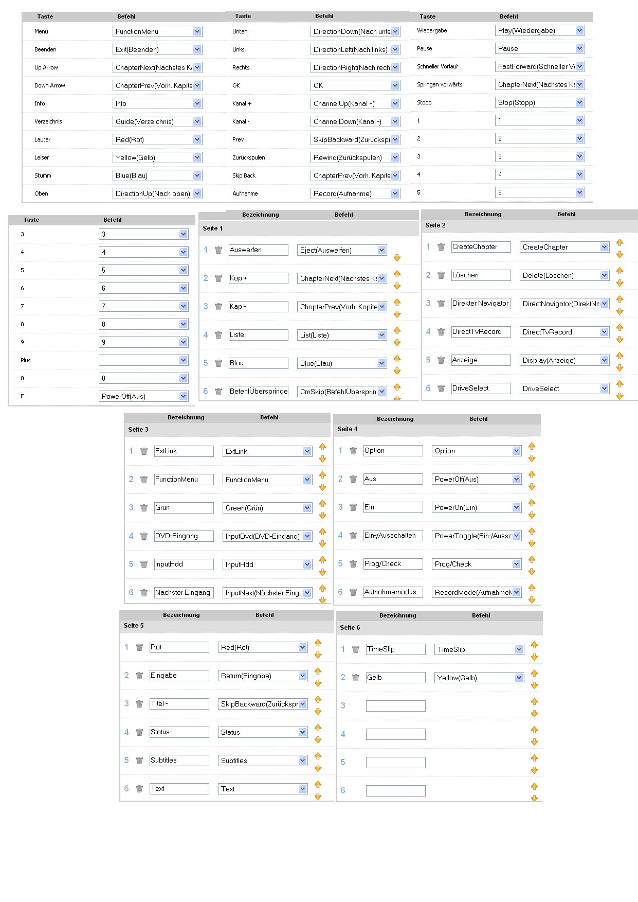 Hier noch eine kleine Beschreibung der GML-Datei. Die drei ersten Ordner sind für die interne Steuerung zuständig. In „Programm starten“ sind die entsprechenden Befehle der Logitech Harmony one hinterlegt um den Windows-Media-Player und das Media-Center zu starten. Für die Befehle beider Programme benutze ich die Infrarot-Befehle vom Panasonic „DVD-Rekorder DMR-Ex81S“ , welchen man sich in der Harmony one als neues Gerät anlegen muss. Die Geräte-Befehle sieht man hier: