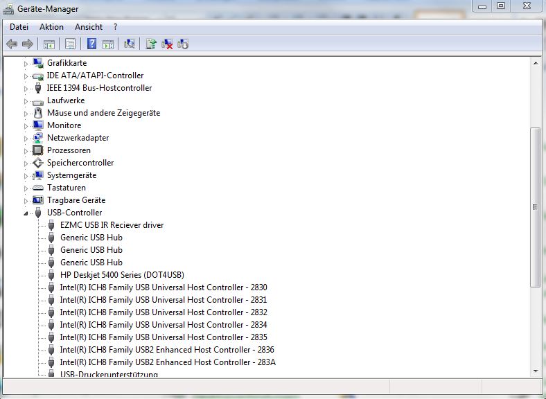 Ich möchte hier einmal meine Erfahrungen über den Aufbau und Installation des IR-Empfängers "USB Ultra Infrarot Empfänger v1.1", incl. Software Konfiguration weitergeben. Dieser Bericht ist allerdings nur in Verbindung mit folgender Rechnerkonfiguration und der Logitech Harmony one gültig. Mit ähnlichen Fernbedienungen und Rechner Konfigurationen, denke ich, kann man aber genauso oder ähnlich vorgehen. Rechner: Mainboard: Asus P5B delux WiFi CPU:Intel Core 2 Quad Q6600 2,40 GHz (3,00 GHz) Betriebssystem:Windows 7 X64 Fernbedienung: Logitech Harmony one Gerät: Panasonic DVD-Recorder DMR-EX 81 S 1) Aufbau des IR-Empfängers Zunächst hab ich den USB Ultra Infrarot Empfänger v1.1 zusammen gelötet, aber nicht genau nach der Vorgabe. Da ich auf dem Mainboard eine USB-WiFi-Karte hatte die ich nicht mehr brauche, habe ich diese durch den IR-Empfänger ersetzt. Dadurch musste ich die Schaltung auf einer gleich großen Platine aufbauen wie die WiFi-Karte. Außerdem musste ich die zwei 3,6 V Z-Dioden und die beiden 68 Ω noch hinzufügen, weil die IR-Karte, wenn sie direkt auf dem USB-Port steckte, nicht erkannt wurde. Wenn ich sie zu testzwecken über ein Kabel mit dem Rechner verbunden habe, funktionierte diese einwandfrei, auch ohne die zusätzlichen Bauteile. Aber direkt auf dem USB-Port wurde sie nicht mehr erkannt. Weiterhin musste ich noch einen Baustein versetzen, da ein Elko auf dem Mainboard im Weg war. Empfehlenswert ist gleich den USB Ultra Infrarot Empfänger v2.0 aufzubauen und man sollte darauf achten das keine anderen Bausteine im Weg sind, wenn man den IR-Empfänger ähnlich aufbauen möchte. Außerdem sollte man nach dem Aufbau ein oder zwei Tage verstreichen lassen und dann die Schaltung erneut minutiös kontrollieren. Denn ich hab nach anfänglichen Rückschlägen tatsächlich noch Fehler gefunden. Der Vorteil dieses Aufbaus ist, dass man keine zusätzliches Gerät rumliegen hat. Nur der IR-Sensor ist in der Front-Tür des Gehäuses zu sehn und ist mit einem Kabel mit dem IR-Empfänger verbunden. -die Karte muss in dem Geräte-Manager eindeutig als „IgorPlug-USB (AVR)“ erkannt sein. -wird die Karte als „undefined device“ angezeigt wird liegt ein USB Kommunikationsfehler vor. Man kann so keine Treiber installiere.