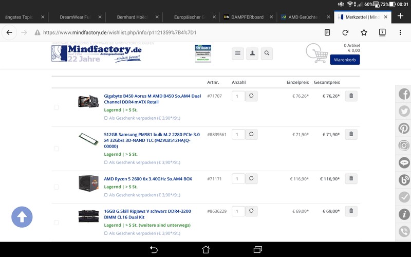 P/L ist das Set unschlagbar, Papa77 Bei Amazon sind die Ryzens gerade schwer vergriffen bzw. überteuert..... Bei uns in Ö habe ich heute bei Saturn eine RX480 (nein, wirklich nicht die 580er und schon gar keine 590er) um 299,99 gesehen. Herrscht schon wieder so gewaltige Knappheit, dass das Zeug schon wieder so teuer ist? Die 5700XTs kosten auch großteils rund 500€.